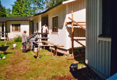 Työt jouduttiin lopettamaan ennen aikojaan, kun helle yllätti ja maali alkoi ”kiehumaan” seinillä, mutta hommat jatkui aamulla.