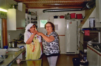 Kemin Eläkkeensaajat ry:stä maalia oli sutimassa Pekka, Jussi ja Tommi. Keittiössä apupiikana oli Mirja. Pääemäntänä oli Aheisen Ritva. Talkoolaisille tarjottiin pottuja, jauhelihakastiketta ja makaronilaatikkoa tykötarpeineen. Jälkkäriksi kahvit ja tuore Lepolan pulla.