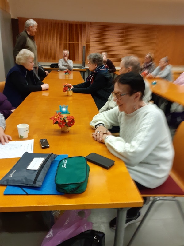 Kemin Eäkkeensaajilla oli 23.11. perinteinen puurojuhla ja sehän veti taas porukkaa mukaan salin täydeltä. Puuroa riitti kaikille satsi kipollisenkin verran ja hyvältä maistui. Lisämausteena oli makoisaa soppaa. Harvoin porukkaa on niin paljon, että penkit loppuvat mutta tällä kertaa kävi niin. Onneksi tuoleja löytyi lisää ja kaikki saivat syödä pöydän edessä. Aluksi kuului vain lusikan kilinää puurolautaseen mutta sitten alkoi puheen sorina voittaa. Olipa mukavaa tavata niin iso määrä kerholaisia, kun korona-peikko taas nostaa päätään. Kokoontumisiin voi tulla taas taukoja mutta sen näyttää aika.