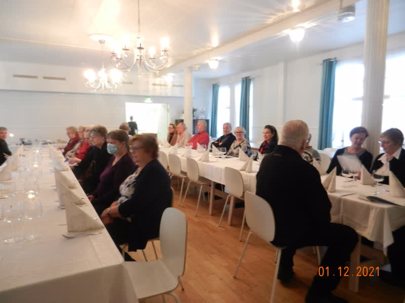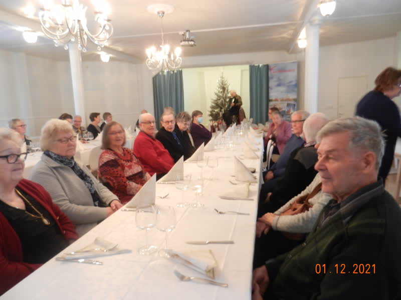 Kemin Eläkkeensaajat ry:n kerholaiset viettivät syyskauden päättäjäisiä Ratapihan Ruustinnassa jouluruokailun merkeissä 1.12.