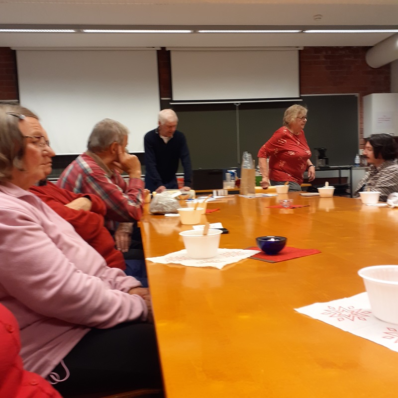 Koska eläkeläisillä on nykyään kiire ja aika on ns. "kortilla" päätimme aloittaa joulunajan jo nyt riisipuuron ja sopan merkeissä, ettei kaikkia joulunajan herkkuja tarvitse syödä jouluaattona.