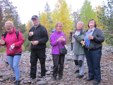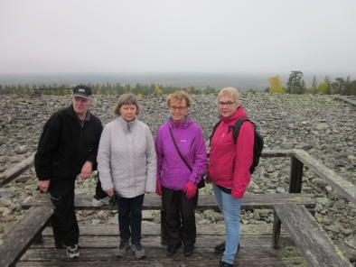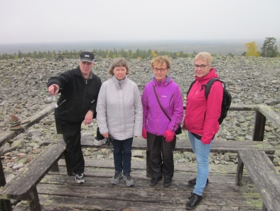 Syksyinen mutta lämmin lauantai saatteli meidät Kätkävaaran retkelle. Kemin ja Tornion Eläkkeensaajien yhteinen retki oli suunniteltu toteutettavaksi seuraavana lauantaina mutta yhteensattumien vuoksi päivämäärä muuttui ja aiheutti muutamia poisjääntejä, mutta iloinen ja reipas joukko meitä silti lähti matkaan. Hieno luontokohdehan Kätkävaara on ja se sijaitsee sopivan matkan päässä Kemin ja Rovaniemen puolessa välissä Louella. Tämän alueen historiaan kuuluu myös pala itsenäisen Suomen historiaa, sillä näille alueille asutettiin Petsamosta siirrettyjä suomalaisia. Tämä retki tutustutti meidät komeaan vaaramaisemaan, jota voi ihailla kuin lappia konsanaan. Mukana matkassa oli myös lapsia ja se antaa aina omaa säpinää reissuun. Kun kapusimme ylös rakkapolkua, kuului takaa yhtäkkiä kirkas ääni: “Kato, pieni vihreä mato”. No kas kun ei pieni vihreä mies, ehdin jo ajatella. Mutta toden totta, siinähän se pieni vihreä mato kiemurteli nelivuotiaan Eelin kämmenellä. Tämä todisti taas ikivanhan viisauden että kun katsoo niin löytää. Kun edellisen kerran viisi vuotta sitten kävimme Kätkävaarassa, matka tuntui paljon helpommalta. Liekö vuodet sitten antaneet omat jälkensä mutta nousu tuntui kyllä paikka paikoin rankalta. Perille kuitenkin päästiin ja kyllä maistui nokipannukahvi hyvältä! Sen verran kiinnostava ja historiallinen tämä seutu on, että siihen palataan erillisen jutun tiimoilta ihan piakkoin.