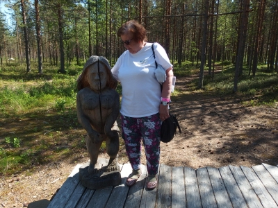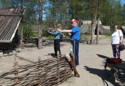 Kemin Eläkkeensaajat vahvistettuna Tornion Eläkkeensaajilla teki retken Kierikkikes-kukseen 15.6. Päivä oli kesäisen lämmin ja uteliaina lähdimme katsomaan, mitä tuo monelle jo tuttu paikka tarjoaisi. Puolentoistatunnin ajamatkan aikana saimme ihastella tien molemmin puolin olevia vanhoja pihapiirejä, joita oli huolella vaalittu. Oli rakennettu uutta mutta samalla vaalittu vanhaa. Yleisnäkymä oli siisti ja hoidetun näköinen. Perille tulla tupsahdettiin ihan yllättäen. Iso hirsirakennus piti sisällään monenlaisia toimintoja: historiallinen näyttely, ravintola ja elokuvasali. Noin 15 min elokuva kertoi ihmisten elämäntavoista muuta vuosituhat sitten. Sen pohjalta osasimme odottaa vanhojen kivikautisten asumusten olevan varsun alkeellisia. Ja niinhän ne olivatkin, tuohella ja sammaleella vuorattuja majoja, joissa oli tulisijan lisäksi vain makuulaverit. Eläinten taljat tarjosivat lämmikettä talven aikana. Ruoka saatiin joesta ja metsästä. Kivikautinen kylä oli hieno elämys. Samaan aikaan meneillään oli moottorisahataiteilijen leiri, jossa paksuista tukinpätkistä syntyi uskomattoman hienoja teoksia. Tyytyväisinä palasimme hillan kukkia tulvillaan olevan metsän läpi bussille. Näin tuli nähtyä yksi historian pisimmälle luotaava näyttely ihmisen historiasta korvesta kaupunkeihin.